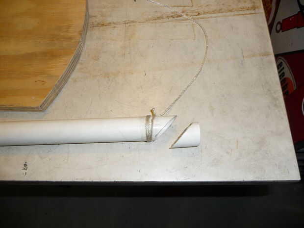 Mi basura puede, o Disculpe, caldera de gran tamaño es 28" de altura. Así que estas longitudes pueden ser necesario cambiar para su situación particular (por ejemplo, si este emergente se utilizará detrás de una lápida que hizo). Corte el tubo de PVC (más grande) a 16". Corte el PVC a 20". Corte ahora para ayudar a mantener la mascarilla recomendada de giro alrededor de cada vez que lo utiliza, el más grande 3/4" PVC en un sobre 45 grados de ángulo de 3/8" hasta desde un extremo. Esto tiene que ser muy exactos, sólo cierre.