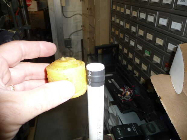 Mi 1er prototipo funcionó sin este paso pero tuve que correr con aproximadamente 50 psi de aire y un montón de él. Después de este sello en el extremo superior de la 1/2" PVC pude opero mi pop-up con mucho menos aire a 30 psi. Corte 2 piezas de 22 mm x 5 M tubería del encogimiento del calor. Uno debe ser 1/4" de largo. 2 debe ser 3/4" de largo. Los pedazos más cortos del encogimiento del calor primero de 1/2" abajo de un extremo de 1/2" PVC. Ahora poner una más sobre esto y centro sobre la pieza más pequeña antes de reducción de calor. El resultado debe tener una protuberancia plana en el centro. Ahora le Lubrique el extremo con el encogimiento del calor. Ya que este es un elemento de movimiento relativamente lento (al menos cuando se compara a la velocidad del sonido), recomendaría utilizando sólo cera de vela. No hay necesidad de calentarlo, a frotarla en el encogimiento del calor. Esto funcionó en la mía sin problemas.