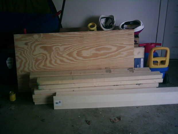 10 8' 2 x 4 (tenía que cortar por la mitad en la tienda de hardware, por lo que encajaría en mi coche)