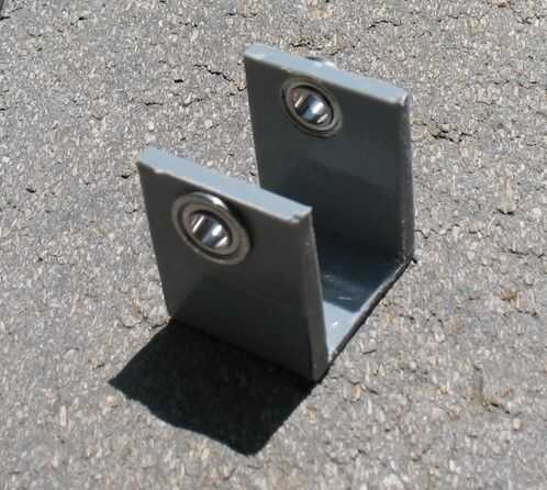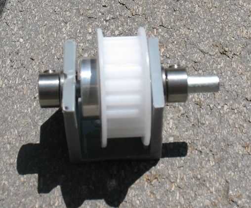 Lo primero que hicimos fue construir la correa de distribución conjuntos de polea. Hay un montón de maneras posibles de hacerlo, pero básicamente, usamos una configuración collar-bearing-bracket-pulley-bracket-bearing-collar. Hicimos varios metal L soportes - sólo perforó un agujero de 1/2" en ellos para los rodamientos de bolas caber en a. Luego vimos algunas cajas de conducto de cables eléctricos en Home Depot y utilizado para hacer U en forma de soporte. Ambos enfoques están bien. Ayuda a tener algunas varillas de 1/4 más cortas para probar éstos hacia fuera - se utilizaron 2.5" piezas para nuestros. El montaje final cuenta con una 3', 1/4 barra de conectar los dos lados para evitar el tormento.