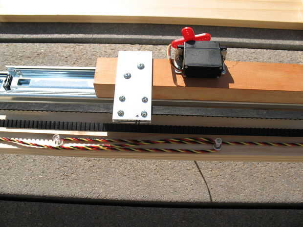 Para colocar la etapa X, utilizamos una placa de aluminio (alrededor de 1 "x 3") bajo la placa de fase Y con dos tornillos a cada lado de la correa de distribución. Hemos perforado dos agujeros en la etapa de X para obtener nuestro driver de 3" en allí - poner dos tornillos, luego deslice un poco y añadir dos tornillos más. Para la etapa Y, hicimos dos placas de aluminio (de 1 "x 3" y el otro de 1 "x 1") para conectar el cinturón a la etapa. En cada caso, sólo intenta abrazadera (o sujetador) la correa del mecanismo.