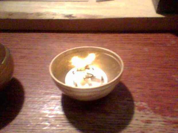 esto es un bajo costo, fácil de hacer bolas que brillan intensamente. Se hace de a 3 para una vela electrónica del dólar y una carcasa de plástico que saqué de una máquina expendedora de 50 cent. Para hacerlo desmonté una de las velas y soldar el LED de el LED de una vela electrónica inalterado. La cáscara aerosol pintado de oro en el interior. Para usarlo, todo lo que tengo que hacer es encender la vela electrónica, ponerlo dentro de la cáscara y broche de presión cierre. En total oscuridad se ve fresco y también puede ser parte de un traje. También puede ser hecha con sólo una sola vela con la llama de la silicona en la parte superior quitado.