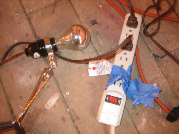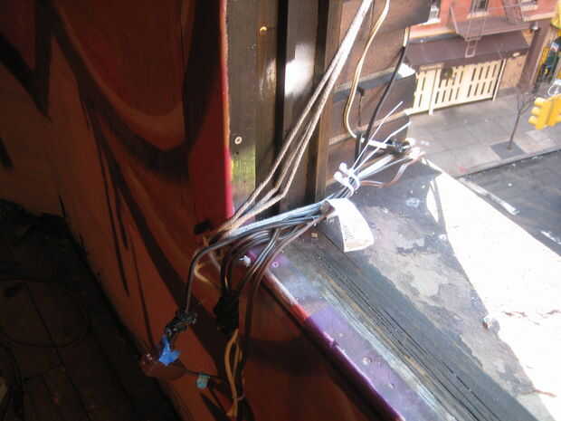 Cada unidad de muestra fue enchufado individualmente en 120 VAC los tomacorrientes utilizando cables de extensión a lo largo de las cuerdas de tensión. Conexiones entre los cables de extensión y luces de Navidad fueron conducto grabado para protegerlos del agua y alambre-atado para aliviar la tensión mecánica. Para hacer el "alto" firmar blink que utiliza un Adaptador de socket de Winker. Usted puede conseguir éstos en Canal street en Nueva York o en línea aquí. Empezará a parpadear unas 20 veces por minuto. El único retén es que requieren una carga mayor que las luces de Navidad LED proporcionan para empiezan a parpadear. Para hackear esto, conectado a una regleta a la Winker y luego enchufar las luces de Navidad y un convencional de 120 VAC bombilla a la franja. Esto puso el toque final de la dinámico en la torre de asesoramiento. Había logrado conciencia de terror en tiempo real.