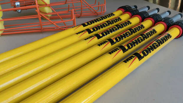 El Sr. LongArm hace una serie de postes que comienzan en 2 pies de extender y sube a los postes que se extienden de 15 pies y mucho más. Hemos probado los postes en varias longitudes y encontró que para nuestro uso 3208 que se extiende de 4 a 8 pies, es más efectiva. Cuando fruta cosecha postes de más de 8 pies, apuntando y enlace de la fruta se convierte en frustrante.