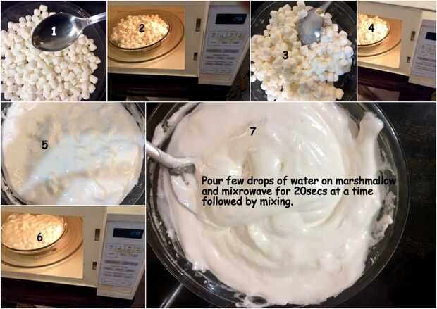 1. El malvavisco en un recipiente de microondas seguro, rociar 1 cucharada de agua y microondas por 20 segundos.