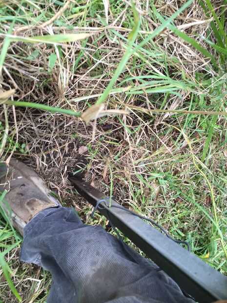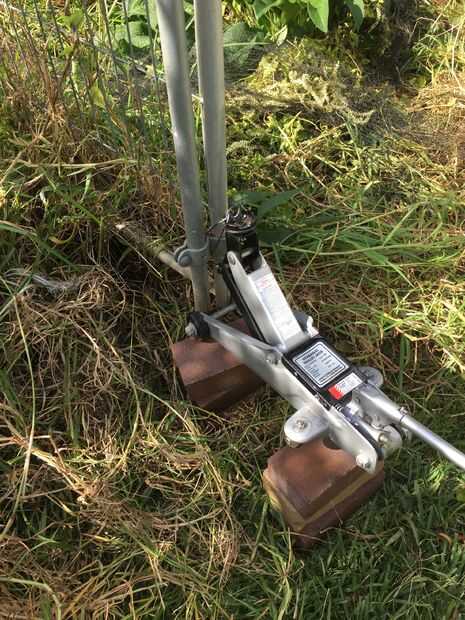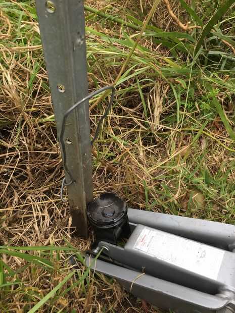 En algunas de las fotos se puede ver que necesitaba 4 ladrillos para conseguir con éxito un pilar mucho más profundo de la tierra. Dejé la puerta en el post como pesaba nada con ayuda de jack y proporciona un ancla para el bucle de alambre de la cerca.