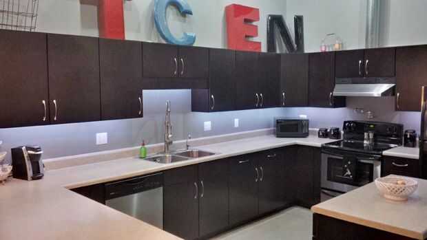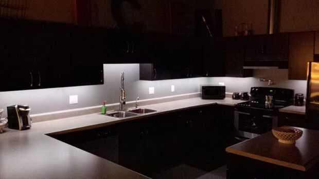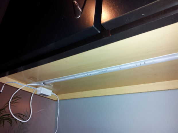 Decidimos obtener algunos bajo gabinete de iluminación... más fácil decirlo que hacerlo. Todas las opciones disponibles eran demasiado voluminosos para el labio pequeño en la parte inferior del gabinete... utilizarlos habría hecho nuestra cocina se parecen un poco más 'Regreso al futuro' de lo que queríamos con todas las cosas innecesarias en vista llana. Las opciones más frescas fueron MEGA caro!