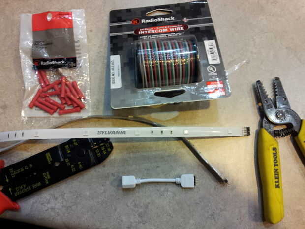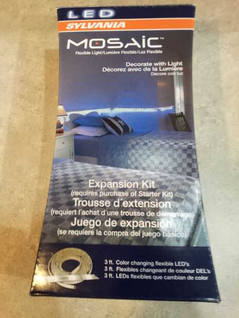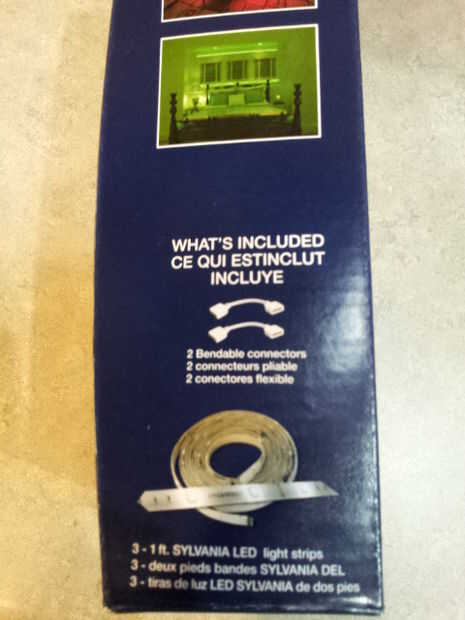 Compra tiras de luz led decorativas de "Mosaico" de Sylvania y tiro em allí... uno de los problemas más, realmente no hacen curva, curva y separar por muchos pies en un momento... Hace resplandor justo?? Tiempo ir a Radioshack local y mis compras.