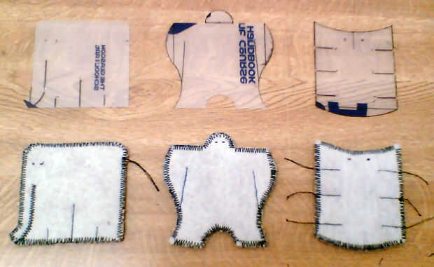 Descargar la plantilla .eps, imprima y virar sobre el material de la plantilla. Como alternativa, copie el patrón directamente sobre el material de la plantilla usando a medidores de la regla y el ángulo. Mis plantillas están hechos de plástico sobrante de la hoja - la hoja del polipropileno utilizada para archivadores y carpetas es bastante buena para esta aplicación ya que es 1mm - 2mm de espesor y resistente pero se corta fácilmente con un cuchillo.