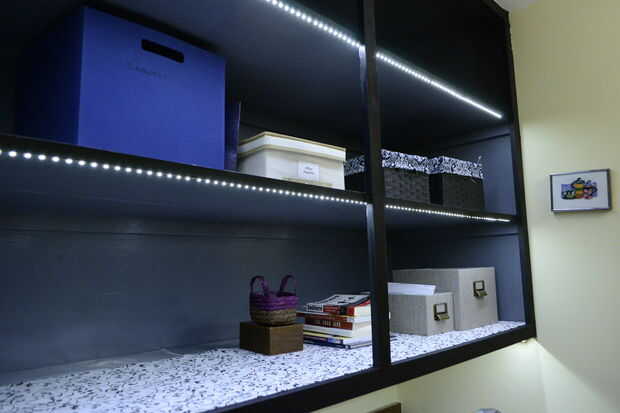 comencé con una gran tira de LED, personalizado cortada al tamaño, funcionó el poder instalar un interruptor y ocultó cuidadosamente los cables. Este proyecto puede fácilmente ser adaptador a cualquier lugar necesita algunas iluminación debajo de algo. (ej. gabinetes de cocina, espacios de trabajo, estanterías, exhibición de casos, etc..) Es también una buena guía sobre cómo instalar las tiras de la iluminación en general y puede usarse como base para otros proyectos de iluminación de baja tensión.
