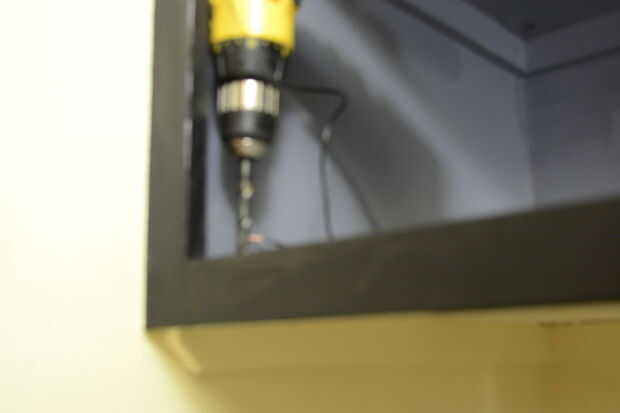 Perforar agujeros en los estantes y caja. (para cables) Fije la caja con tornillos para madera. (avellanar agujeros existentes en la caja con broca grande para que el tornillo se acostará al ras) Perfore un agujero para el interruptor.