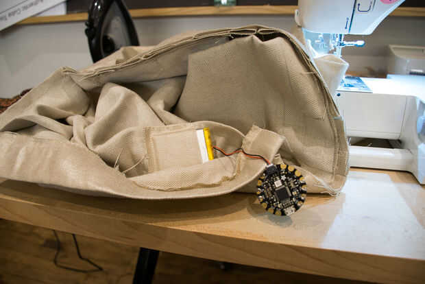 Una vez que su circuito está probado y funciona, es el momento de instalarlo en la falda. ¡ Emocionante! Estamos casi listos!