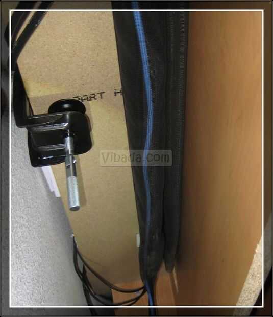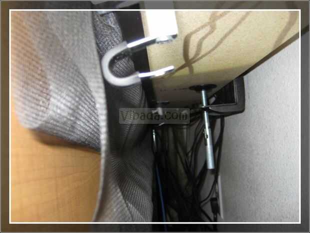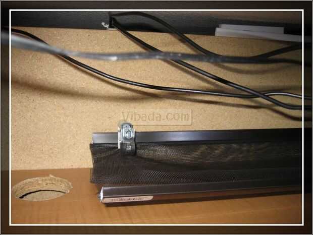 Configurar el soporte de pantalla. El clip de pantalla tendrá el marco de pantalla para el escritorio. El espaciador creará una brecha entre los dos marcos para que los cables pueden ejecutar dentro y fuera del organizador. Las abrazaderas de goma forrado llevará a cabo el segundo larguero. Permite fácil acceso a los cables de la ruta. Sujete el soporte contra el marco y atornillar en su lugar en ambos extremos.