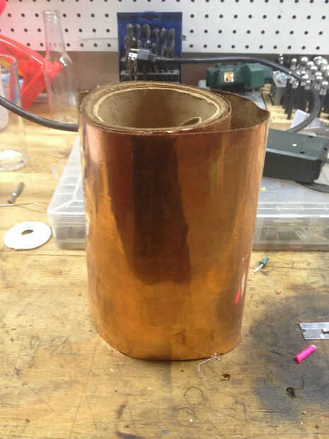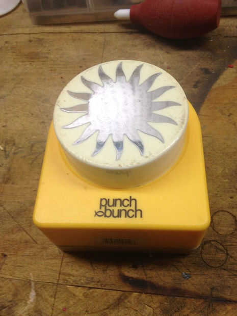 Para que este golpe "Sol" fue la inspiración, y cuando vi el cobre tenía que ver si podía hacer un "sol de cobre". Porque este flasheo es respaldado con alquitrán, me tiró de la cubierta de la tar y había doblado el cobre sobre el sí mismo (porque el alquitrán era muy pegajoso). Perfora hacia fuera muy fácilmente y tenía soles de cobre. Se veían como girasoles, por lo que necesitaba algunos tallos y hojas...