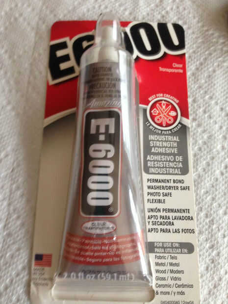 -Pegamento E6000. Prefiero este pegamento sobre el pegamento estupendo porque es un poco flexible. Encuentra en walmart por unos pocos dólares.