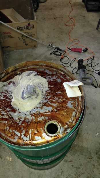 Mi decisión de conseguir un tambor de aceite orgánico fue hecha después de descubrir que estos tambores no tiene un forro interior que me dice es imposible de quitar. Un poco de grasa de codo y un montón de jabón amanecer fácilmente se descomponen el aceite y deja el interior agradable y brillante.