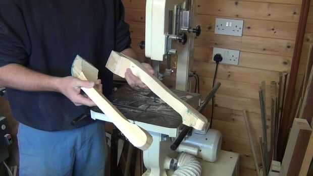 Con las patas y respaldo atado asiento, puede ahora ofrecer los espacios en blanco del brazo y preparar una Junta de culata en el hombro y una sola articulación de espigas en la parte superior de la pierna delantera.