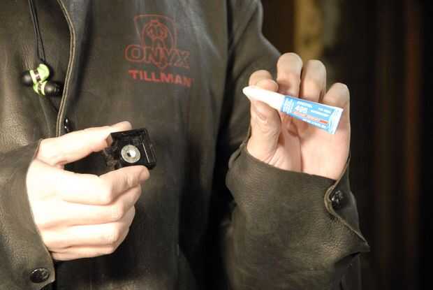 Algún tipo de pegamento industrial de la fuerza o epoxy es necesaria, pero les dejo la opción para usted. He utilizado adhesivo instantáneo loctite 495 porque tenía algunos ahí. Algo con el cuerpo un poco más (mayor viscousity) es mejor.