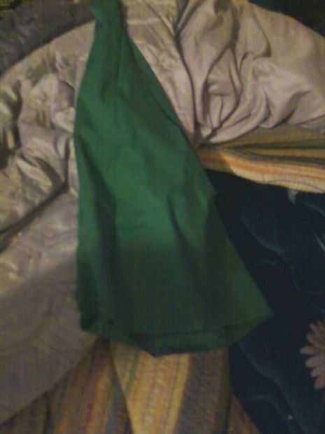 -A la camiseta verde bastante grande (yo usé t-shirt XL de la mujer-$5 en una tienda de segunda mano)