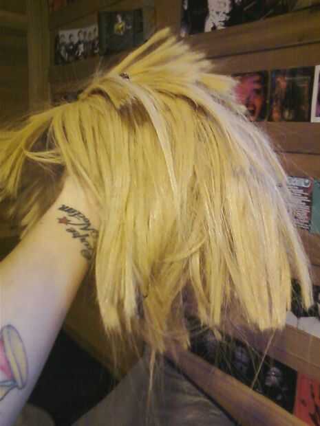 En cuanto a la cabeza, corte su peluca o estilo de su cabello a longitudes apropiadas. Para hacer el sombrero, ata a la tela verde alrededor de mi cabeza como un paliacate y seguridad fijado en la parte posterior. Cortan los lados restantes, así que formaron un extremo puntiagudo y les grapadas. Hay probablemente más avanzadas formas de hacer este look más profesional, pero bueno, esto se supone que es un disfraz fácil! :)