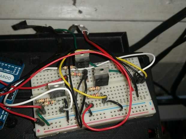 Para que este proyecto a trabajar, vamos a usar los pines PWM (Pulse Width Modulation) de Arduino. Esto permite que la señal enviada de estos pines a cambiar rápidamente, que son detectados por los mosfets, completar o abrir el circuito para las luces. Aquí, cada hilo está conectado a su propio mosfet y pin PWM de Arduino para permitir que cada filamento a controlarse en el dependiente. Aunque las fotos son un poco descuidadas, puede utilizar como una guía de cómo puede caber el circuito en el protoboard.