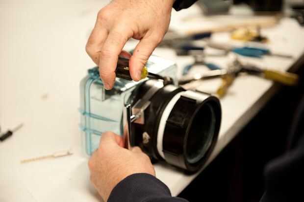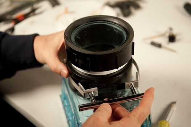 Instale la manija en la base de la cubierta del lente. Exactamente donde se instalar la empuñadura es su opción. Lo bueno es que puede ajustarse fácilmente aflojando la abrazadera de la manguera, haciendo un ajuste y apriete la abrazadera hacia abajo.