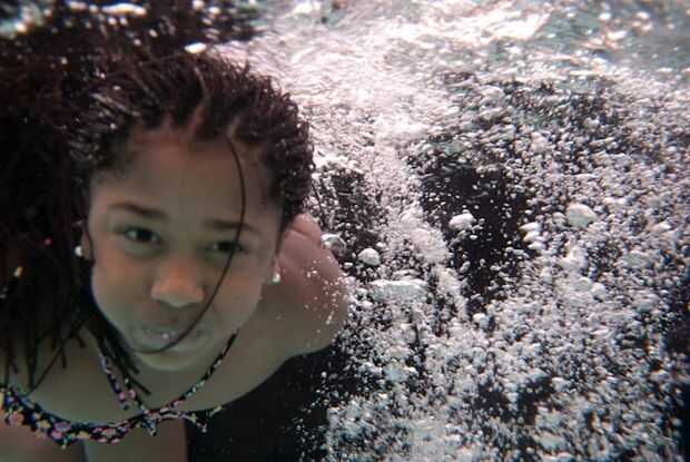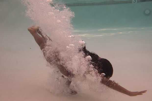 Durante la grabación me encontré con que flotante fue un problema. El uso de pesas de buceo hará más fácil de bajar y quedarse abajo. El aire de la caja realmente hace la cosa muy boyante. Combinada con mi flotabilidad hace difícil bajar y quedarse abajo en el agua. Durante la grabación de mis hijas en la piscina de la abuela terminé llenando mis troncos de la nadada con rocas. Algo incómodo pero fue muy eficaz para ayudarme a permanecer bajo el agua un poco más.