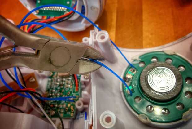 Como los extremos del cable toque punto mutuamente el juguete debe ser totalmente silenciosa, pero lo contrario totalmente operativa. Probé presionando los botones de juguete, miré parpadeando las luces y escuchando el sonido del silencio.