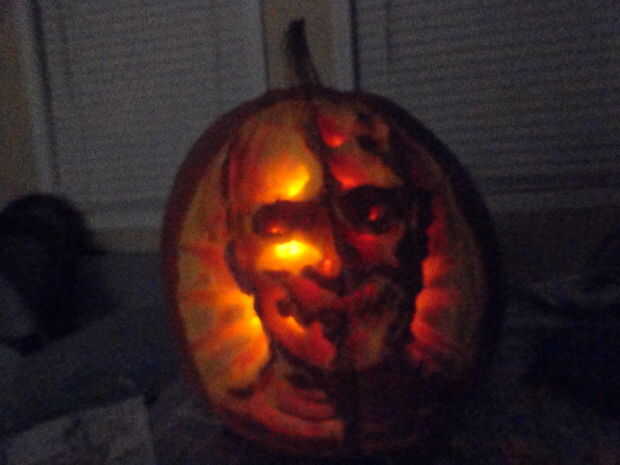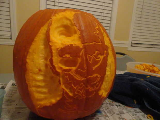 Cavaron los túneles de luz alrededor del cuello, orejas, mejillas y frente del zombie con las herramientas de enrutamiento. Prácticamente en cualquier lugar habría luz. Donde yo quería menos luz, pero claro todavía no obstante, solía el clavo largo asoman hileras de agujeros a través de él. Una vez más esto no fue un recto en el enfoque, pero en un ángulo tal que cuando no verse mirando la línea recta calabaza en los agujeros.