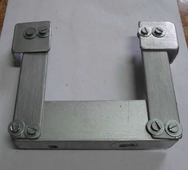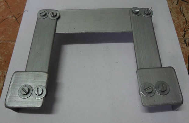• Ahora tenemos que cortar cuatro barras de aluminio largo fino de 12 cm y taladre agujeros en ellos como se muestra en la imagen.