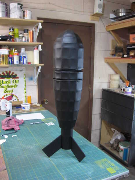 Unas capas de imprimación se utilizaron para cerrar bien el papel y que quede listo para la capa final de pintura. El cohete fue pintado con dos capas de pintura en aerosol negra mate.