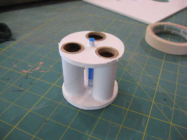 Las aletas se hicieron de balsa de 1/4". Al pegar cosas como madera y papel, siempre es mejor poner una fina capa en ambas superficies, esperar unos segundos y luego ponerlos juntos. Una vez seca cada aleta, filetes fueron agregados con más pegamento.
