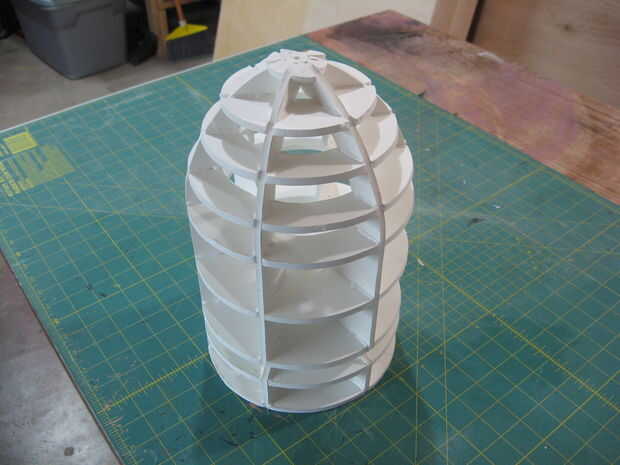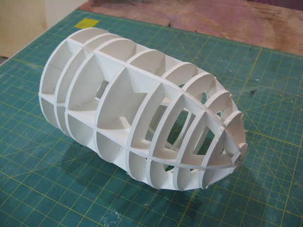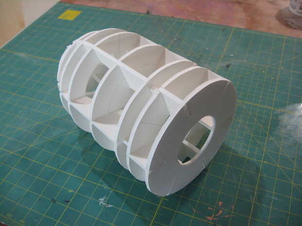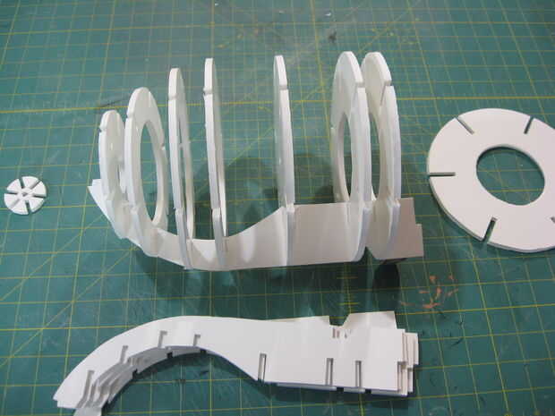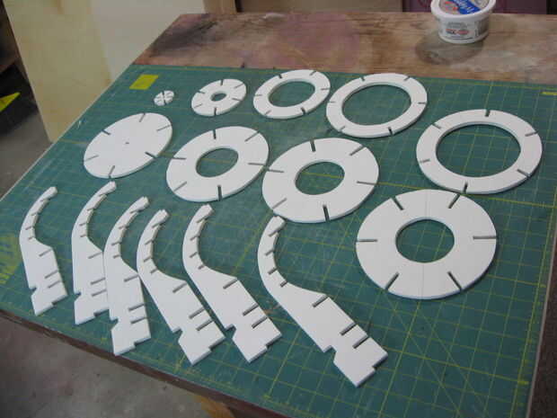 Si desea hacer un modelo ligero del personaje de Bill Bala, debería funcionar bien para usted. Cortar la pieza transversal y utilizar como una plantilla para trazar y cortar seis piezas de espuma. Coincide con un compás hasta los planes para determinar las distancias diferentes es necesarias colocar los trozos de círculo. Utilice un transportador para colocar donde van las muescas para encajar los travesaños. Estudio de estas imágenes cuidadosamente para ver lo que tienes que hacer. Será todo un reto, pero usted conseguirá!