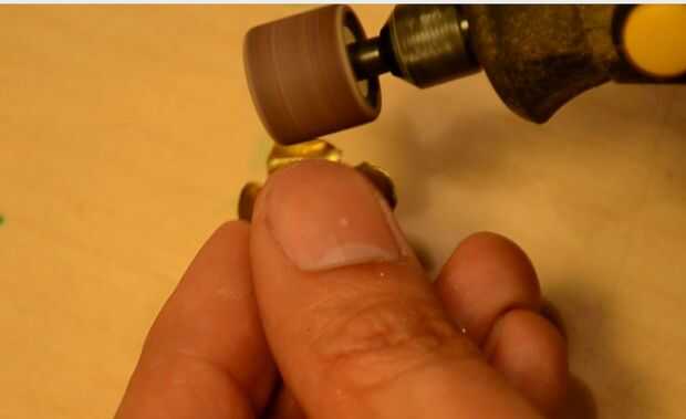Mientras con el tambor de lijar, arena sobre el extremo plano de la.22 y 9 mm de la carcasa para limpiarlo.