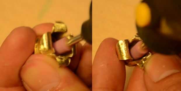 Utilizando una piedra de moler cilíndrico, moler el interior de la.45 y 9 mm las cubiertas hasta que estén brillantes. Esto no debería tomar más de 10 segundos para cada cubierta.