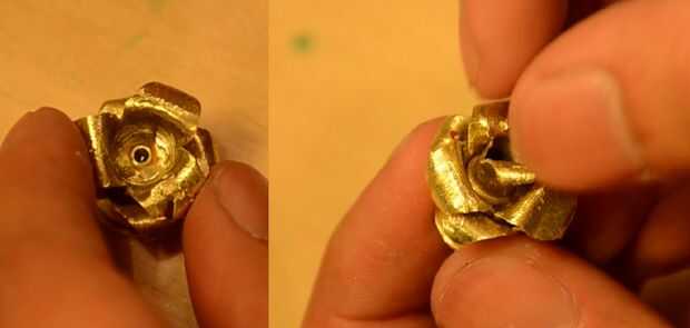 Inserte la caja de 9 mm en la carcasa del.45. Alinear para que los pétalos de la caja de 9 mm no obstruyan el orificio en el pétalo de la caja de la 45.