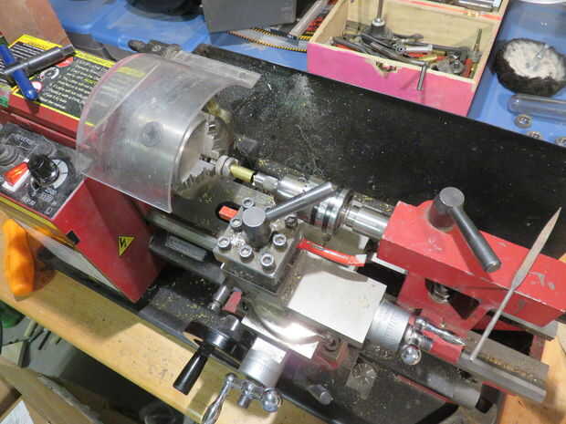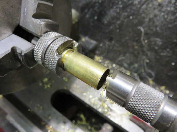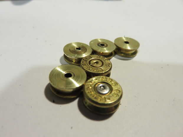 Para cortar las cáscaras usé mi mini torno y una fresa de bala. Esta herramienta se usa normalmente para cuadrado hasta el borde de una carcasa de latón shell antes de volver a cargar. Normalmente no se cortarlo abajo esto ahora.