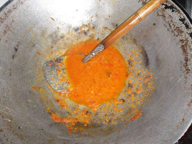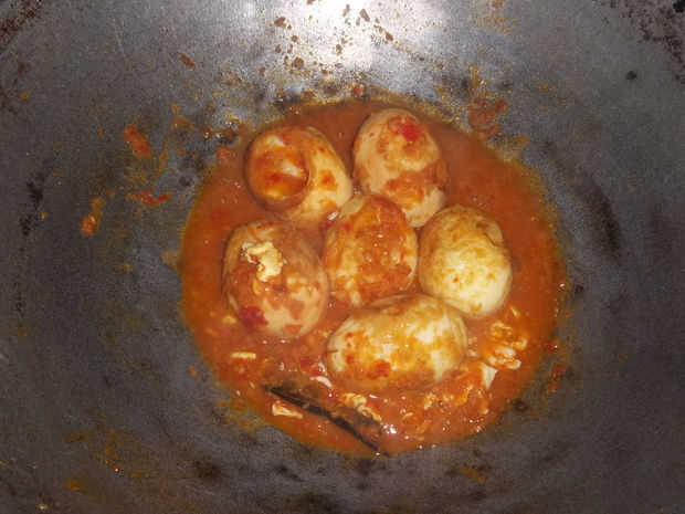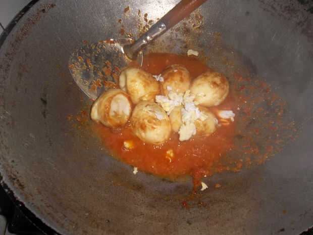 Sofreir los aliños hasta que espese y los huevos de entrada.