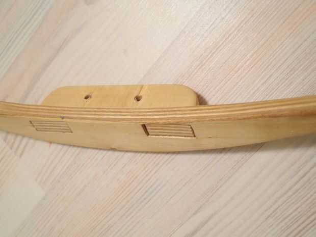 Primero cortó la rueda en forma de un arco. El radio interior, tomé más del doble de la distancia al asiento, como sus manos están creciendo fuera de la columna vertebral y de los brazos que tienen un ancho de 25 cm.