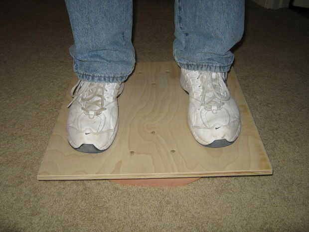 hay un montón de instrucciones para la fabricación de tablas de equilibrio. Un par de las opciones de rodilloincluyen el uso de botellas de soda pop cubiertos con cinta adhesiva o pvc cubierto con un antideslizanteadhesivo.Este instructable simple de