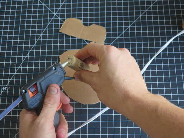 Utilice pegamento caliente para unir las piernas en la parte inferior de su cuerpo. He utilizado tapones de una tienda de arte de reciclar, pero tantas cosas grandes de trabajo (marcadores, palillos del popsicle, Carretes, palillos de dientes).