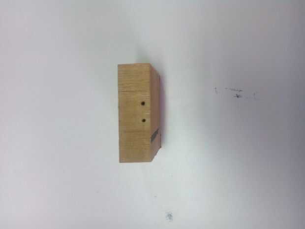 Hacer dos agujeros en cada lado de la pieza de madera con raya negra fresca. Asegúrese de que los actualmente todo ajuste en cositas de metal de disco duro caso. Se recomienda utilizar la regla de ángulo. Si tienes ojos afilados y regla normal buena, estará bien. No tengo regla de ángulo.