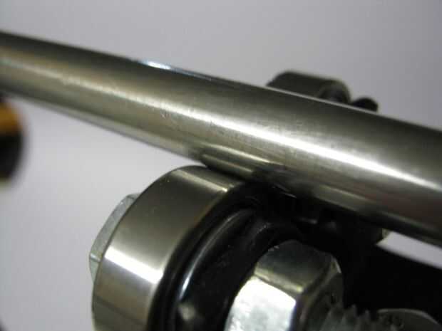 A continuación utilizar una varilla de acero de un viejo escáner, que son pulidas y tienen una superficie exacta para mi propósito de comprobar la alineación de la parte superior llevan las placas.