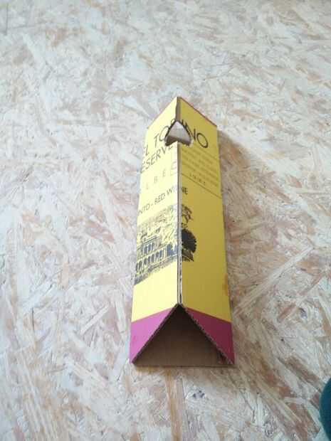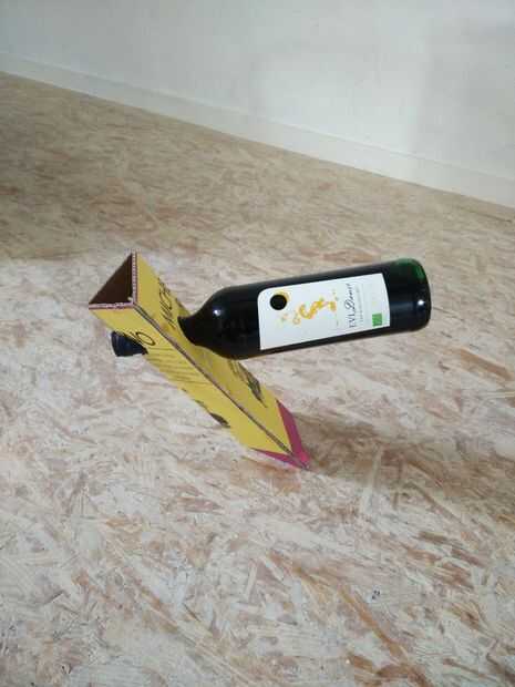 Voila! Ahora tienes un triangular en forma, equilibrio sostenedor de botella (no olvide que beber su copa de vino).