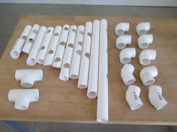 Una nota importante es que en las piezas que cortan en ángulo, asegúrese de perforar agujeros en el mismo lado que el lado más largo del PVC para que las botellas pueden contrarrestar la inclinación de la PVC. Si parece confuso, usted conseguirá lo que esto significa una vez que comienza el balanceo de botellas.
