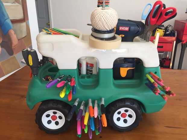 Para celebrar el regreso a la escuela hemos decidido hacer un divertido y útil balanceo herramienta & arte carro para nuestras aulas de espacio creador. Se utilizó un antiguo "paso 2 más grande familia Camper". Estamos seguros de que cualquier familia con hijos tendrá unos grandes 'trucks' y 'cars' que están sentados en la parte inferior del armario o debajo de la cama que podría ser utilizada en este Instructable. Por ejemplo camiones Tonka sería realmente genial!!!