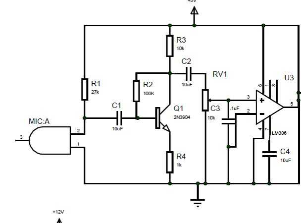 Bebé llore se detecta utilizando el circuito del preamplificador de micrófono. El circuito consta de micrófono de condensador, resistencias, condensadores, transistores 2N3904, amplificador de audio lm386 etc.. La salida del amplificador se alimenta a la entrada analógica del microcontrolador. El micro controlador es programado para rotar motor cuando detecta el grito.