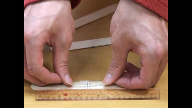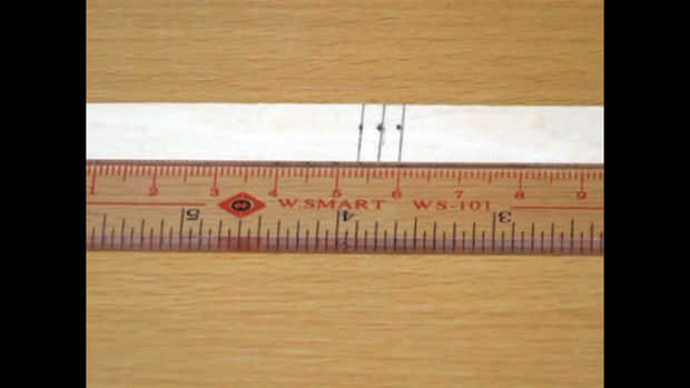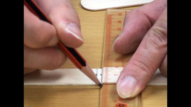 2) dibujar las marcas en la tabla que indica el centro de la duela y la anchura / diámetro del eje