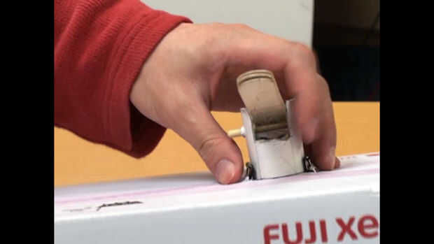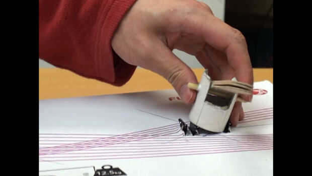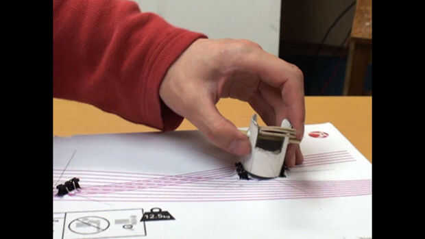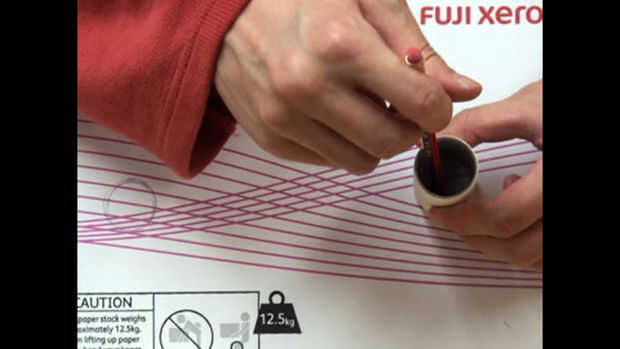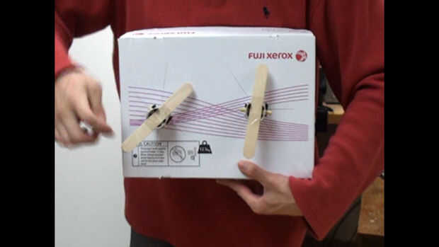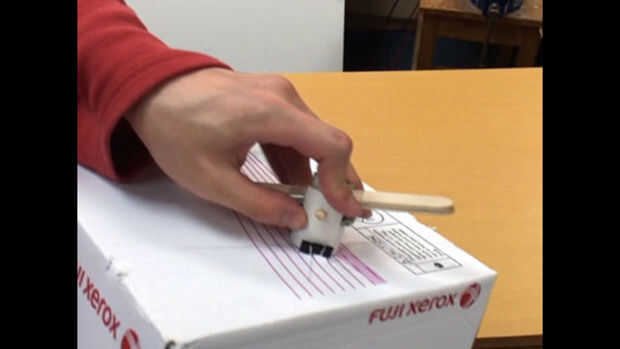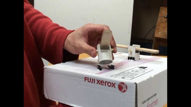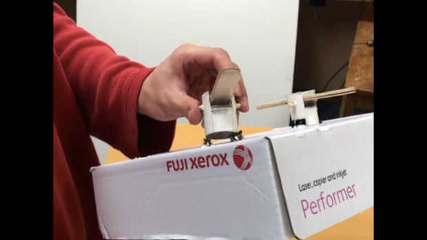 En este proyecto, una cubierta de caja de cartón se utiliza como plataforma para el balancín.