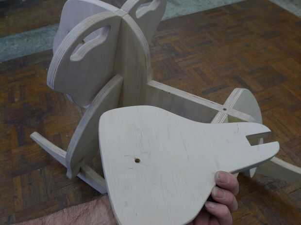 Finalmente puede desenroscar los dos ejes de balancín y corte las ranuras para el elefante en.